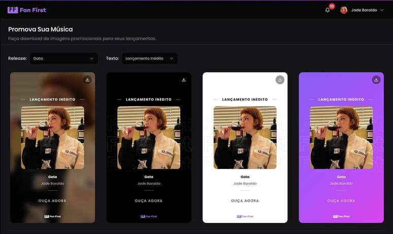 Além disso, a plataforma conta com um gerador de artes para que o artista divulgue suas músicas ou o próprio perfil em outras redes sociais. Dessa forma, a integração fica mais simples e eles não precisam pensar em design. O recurso oferece algumas opções e o artista escolhe qual arte quer utilizar.