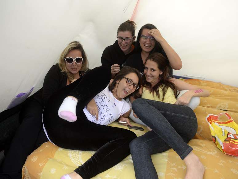 Ao lado das adolescentes, um grupo de mães, bem mais tímidas do que as falantes adolescentes, dizia que não dá para deixar as jovens sozinhas. "Eu não deixaria ela vir sozinha. A gente ficaria em casa, preocupada com elas aqui? Tem que acompanhar", disse a mãe de Nathaly, 15 anos. As duas vieram de Porto Alegre (RS) para acompanhar o show de domingo, quando se comemora o Dia das Mães
