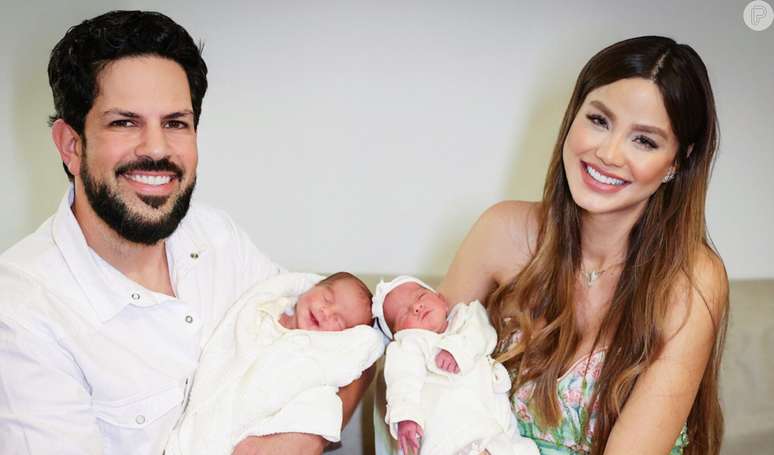 Sorocaba e Biah Rodrigues deixaram hospital neste domingo com os filhos gêmeos, Angelina e Zion; menino chegou a ficar em UTI após nascimento