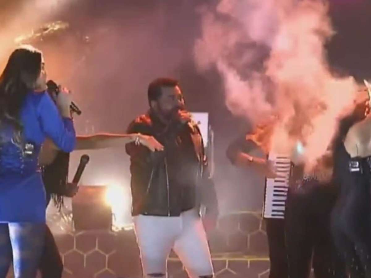 Fogo atinge cabelo de backing vocal da banda Limão com Mel durante show em Pernambuco