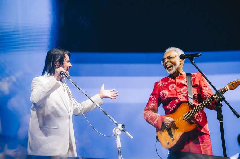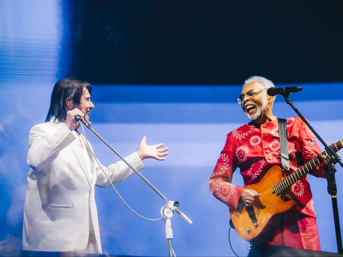 Gilberto Gil recebeu Roberto Carlos no palco de seu show realizado neste sábado, 18, no Allianz Parque, em São Paulo. Eles repetiram a parceria do ano passado, no mesmo local, durante a gravação do especial de Roberto para a Globo, cantando A Paz. Todo de branco, o astro de jovem ainda apresentou Além do Horizonte.