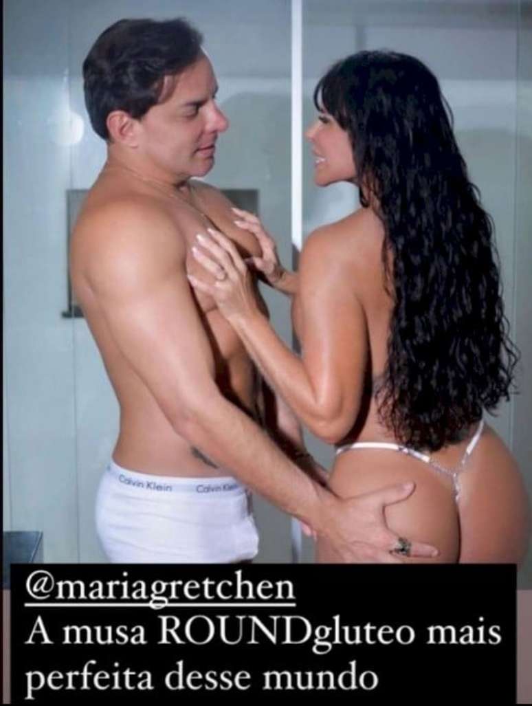 A cantora Gretchen foi clicada de fio dental em uma postagem no Instagram ao lado de seu marido, Esdras de Souza.
