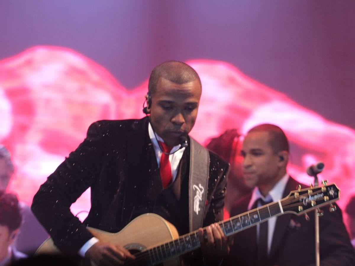 Liderado por Alexandre Pires, o grupo Só Pra Contrariar se apresentou em uma festa especial, em São Paulo, na noite desse domingo (22). Na foto, Carlinhos