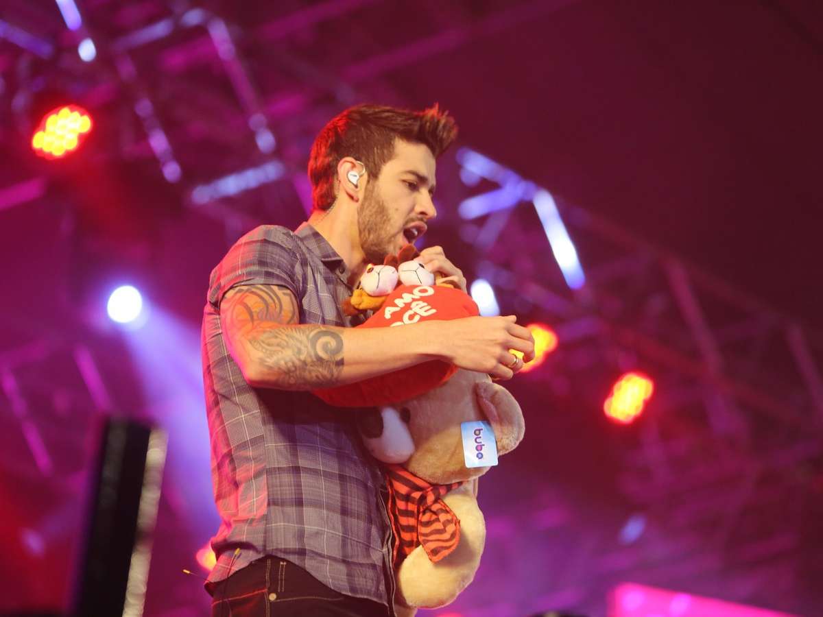 Gusttavo Lima empolgou os fãs de São João de Meriti, no Rio de Janeiro, em show realizado no domingo (25). No palco, o cantor recebeu com carinhos os presentes do público, abraçando os objetos enquanto se apresentava
