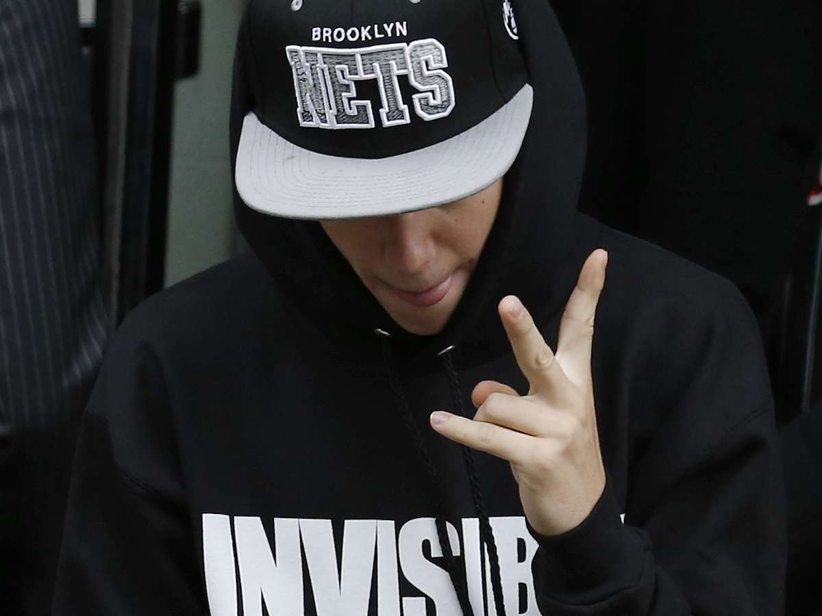 Nesse sábado, Bieber saiu rapidamente do hotel em Londres e evitou contato com fãs e a imprensa. O cantor ainda vestia um moletom escrito "invisible bully", algo como "bullying invisível", em português