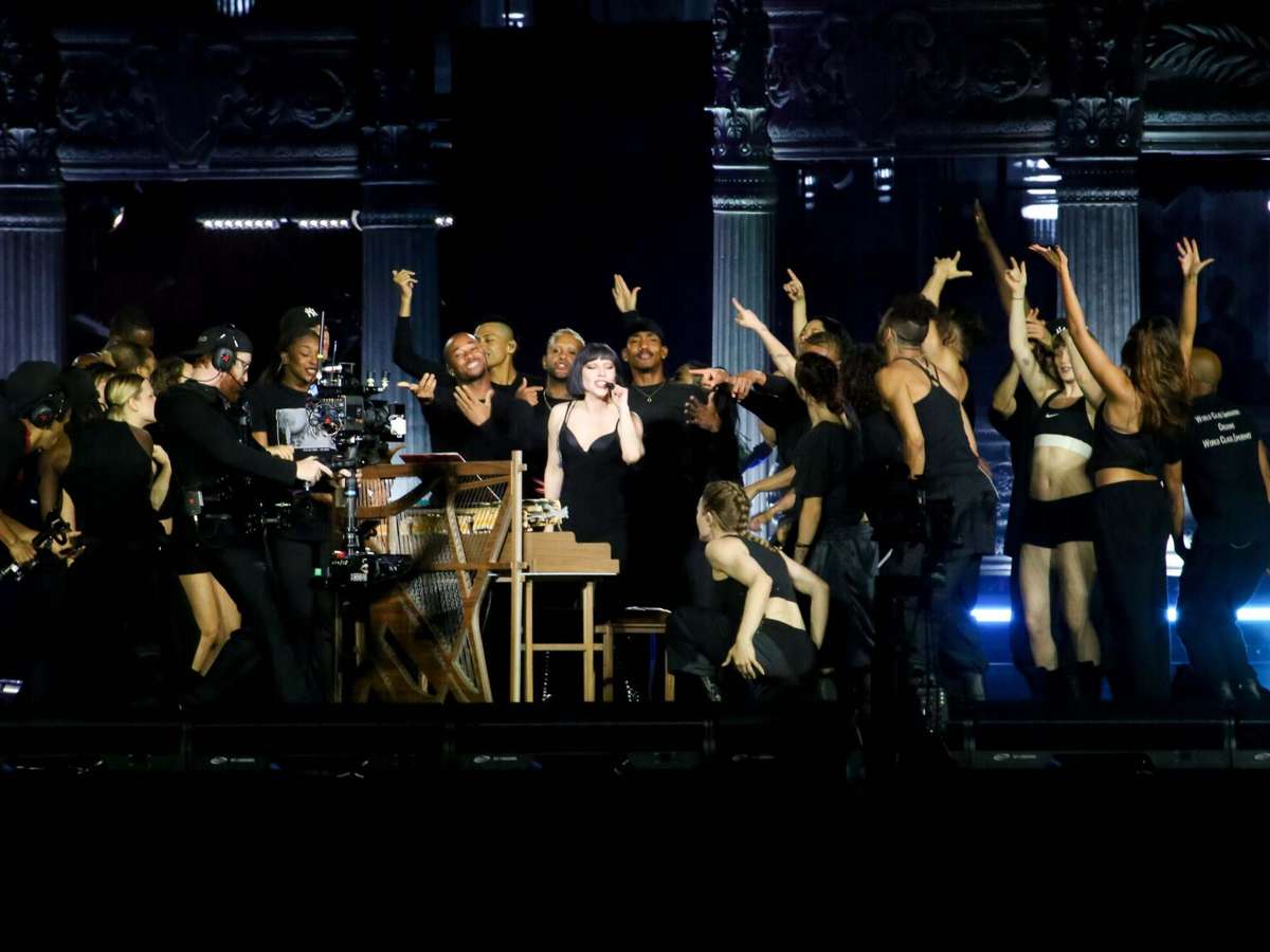 Gaga apareceu toda de preto e com os cabelos curtos. Junto com a banda e os dançarinos, a cantora agitou o palco enquanto ensaiava os sucessos que vai performar amanhã. Os fãs acompanharam com entusiasmo a passagem da diva. Veja: