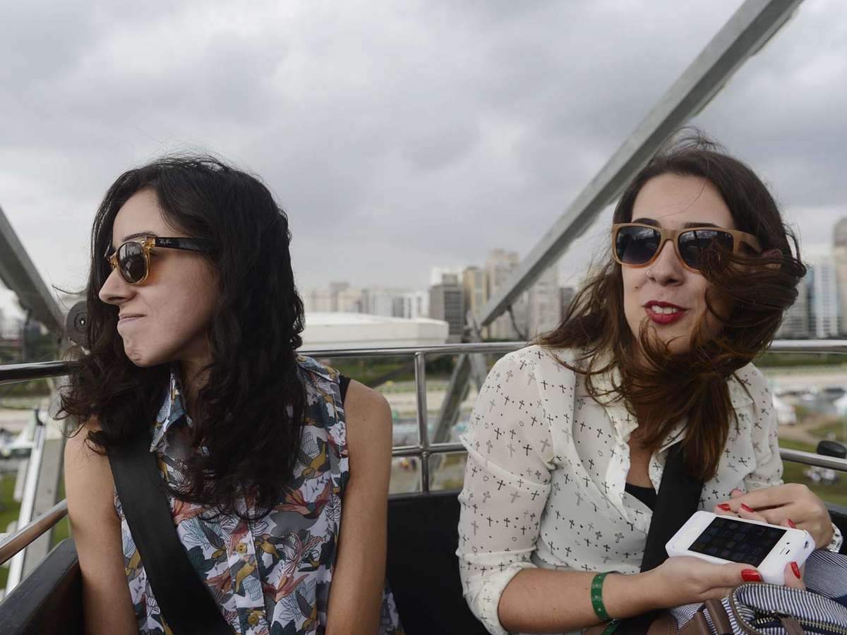 Priscila Pinho (de óculos vermelho), Maria Fernanda Manna (com relógio dourado), Pedro de Andrade e Laura Lewer vieram de Juiz de Fora (MG) para curtir o Lollapalooza, em São Paulo. O quarteto aproveitou a roda-gigante montada no Jockey Club de São Paulo