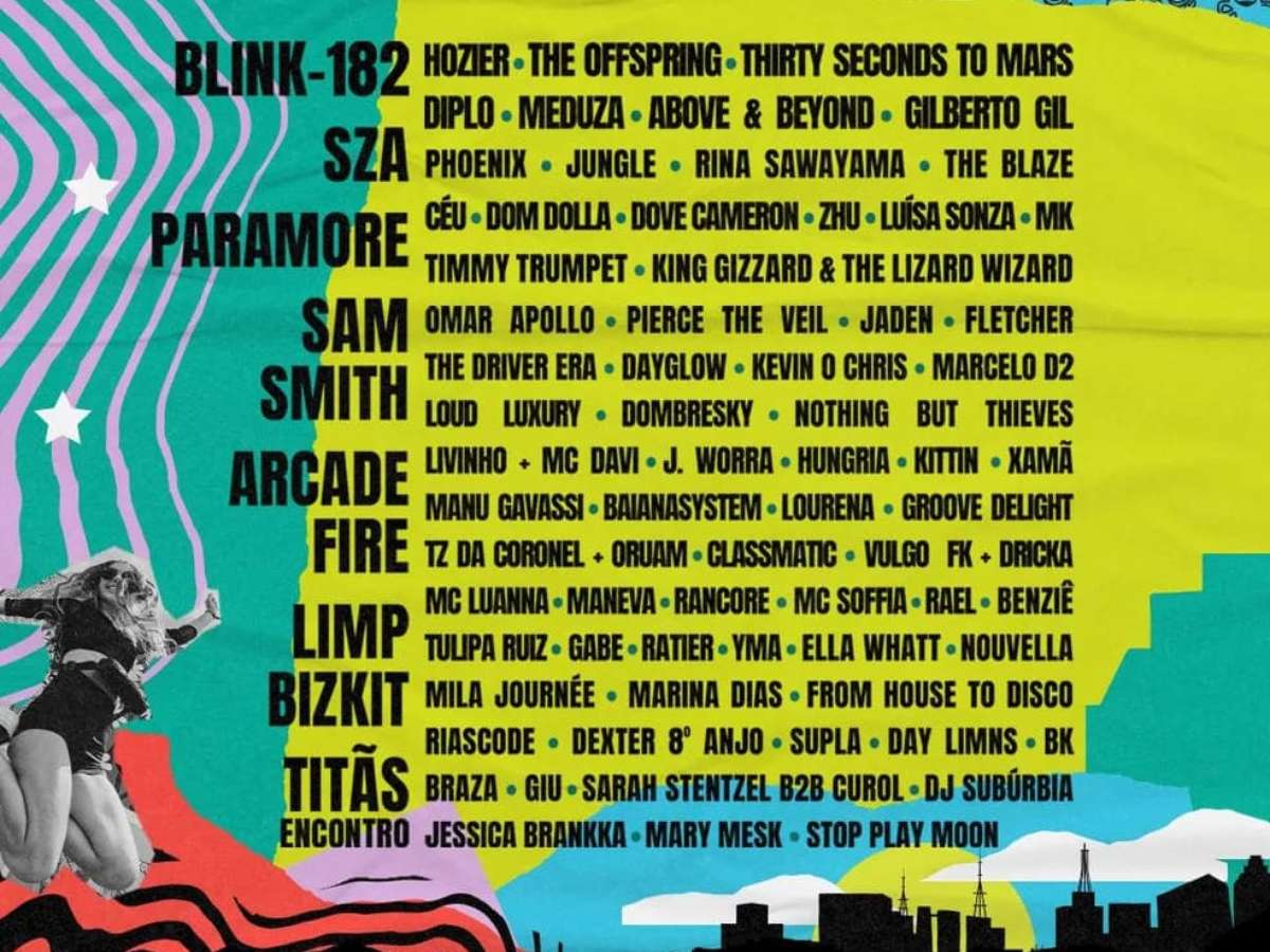 Entre os headliners do festival de 2024, estão Blink-182, que cancelou a participação do festival deste ano, SZA, Paramore, Sam Smith, Arcade Fire, Limp Bizkid e o grupo Titãs. Confira o line up completo: