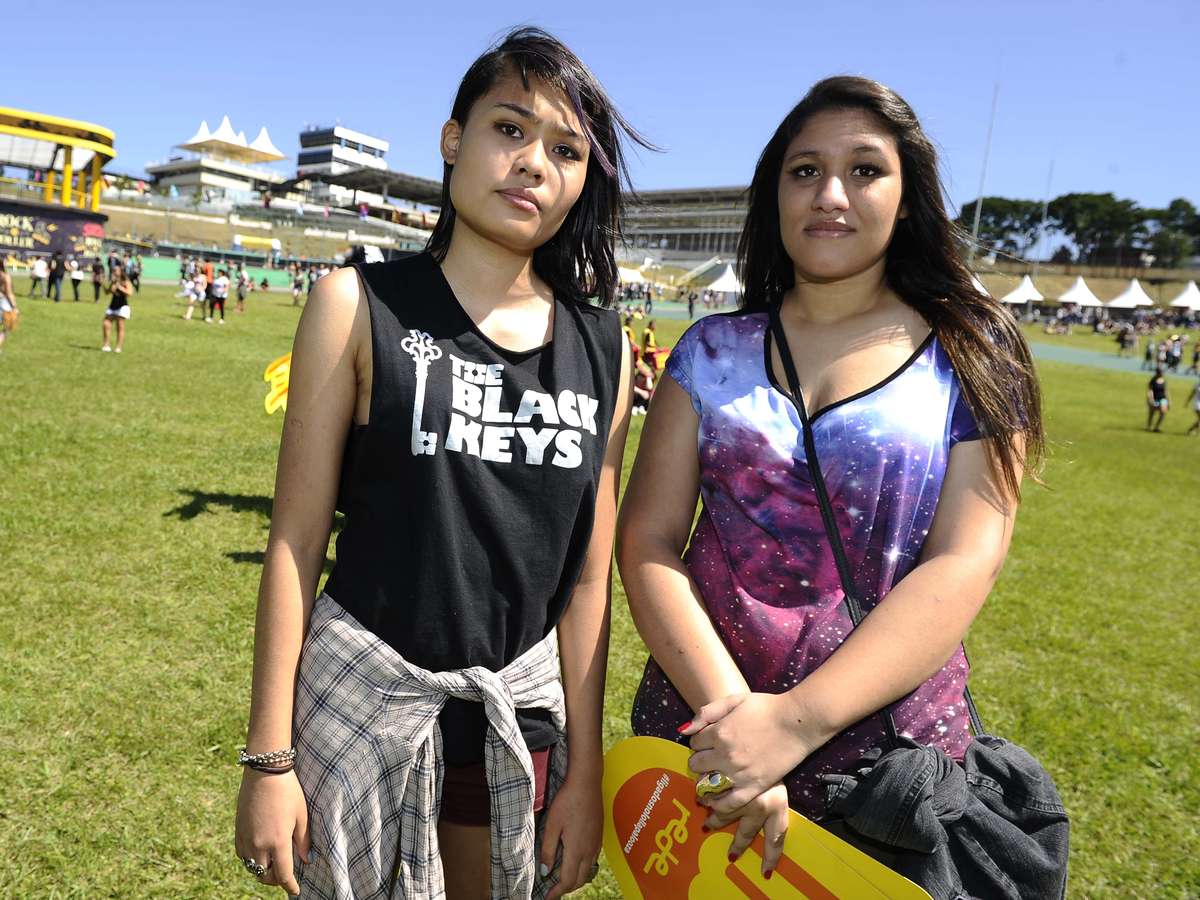 Neste sábado (5), primeiro dia de shows do Lollapalooza 2014, fãs afirmaram que se sentiram desconfortáveis para usar transporte público no trajeto até o Autódromo de Interlagos, já que estavam de roupas curtas para enfrentar o calor. A repercussão é sobre a pesquisa do Ipea (Instituto de Pesquisa Econômica e Aplicada) divulgada em março, em que 26% dos entrevistados disseram que "mulheres que usam roupas que mostram o corpo merecem ser atacadas". Na foto, Bruna Sekiya e Camila Rodrigues