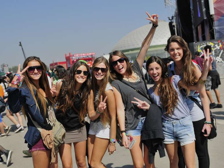 Com muito calor no Parque O'Higgins, em Santiago, no Chile, o público fez o que pôde para se proteger do sol e aproveitar o primeiro dia de shows no Lollapalooza Chile 2013