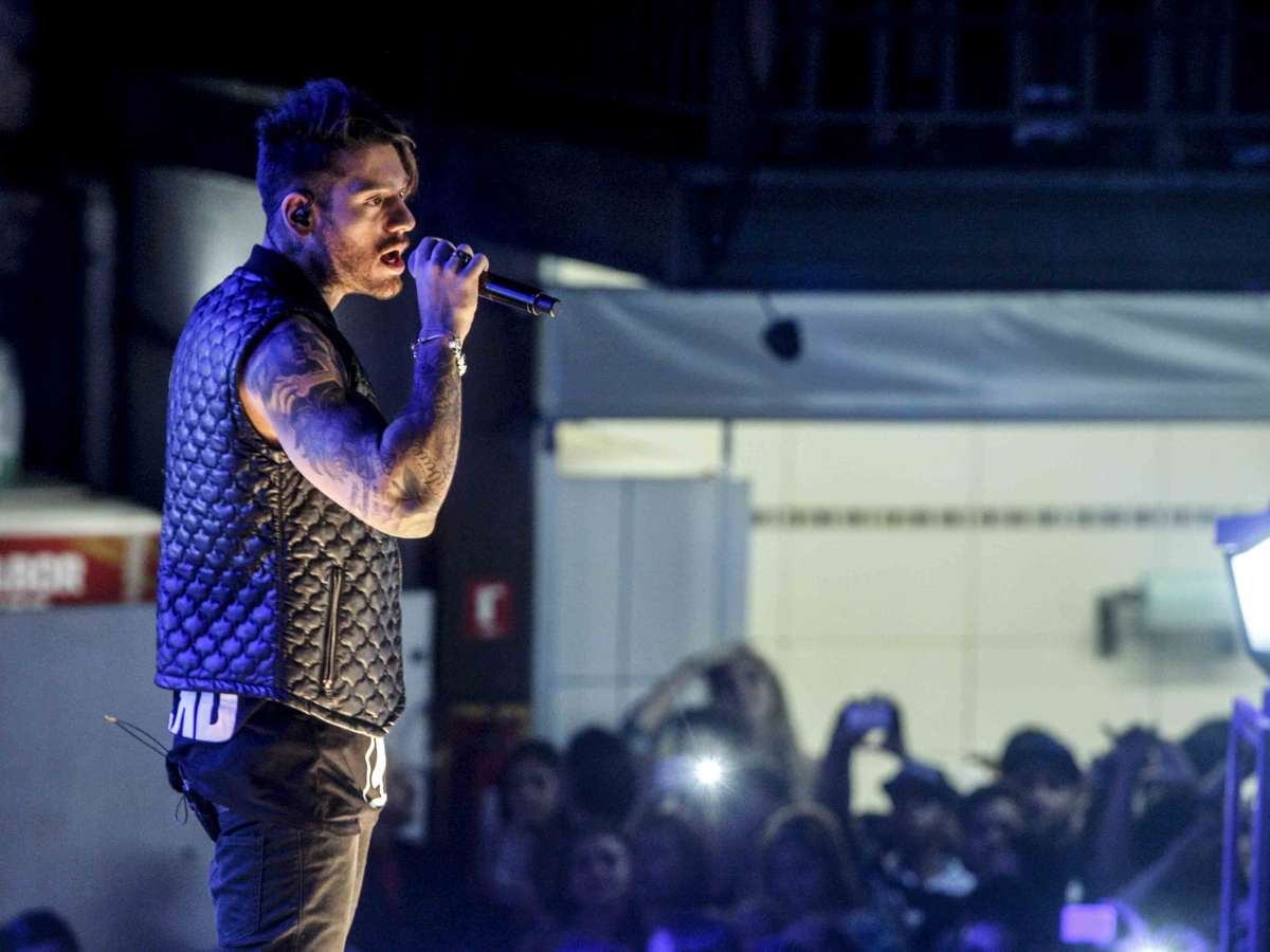 Lucas Lucco entrega flores e deita em colo de fã em show