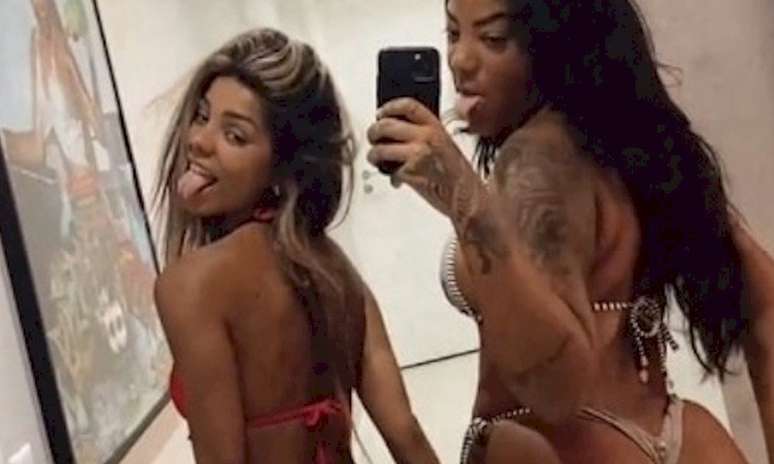 Ludmilla tira foto com esposa bom biquíni fio-dental