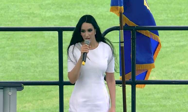 Marina Elali é a primeira artista brasileira a cantar hino dos EUA em evento do FBI