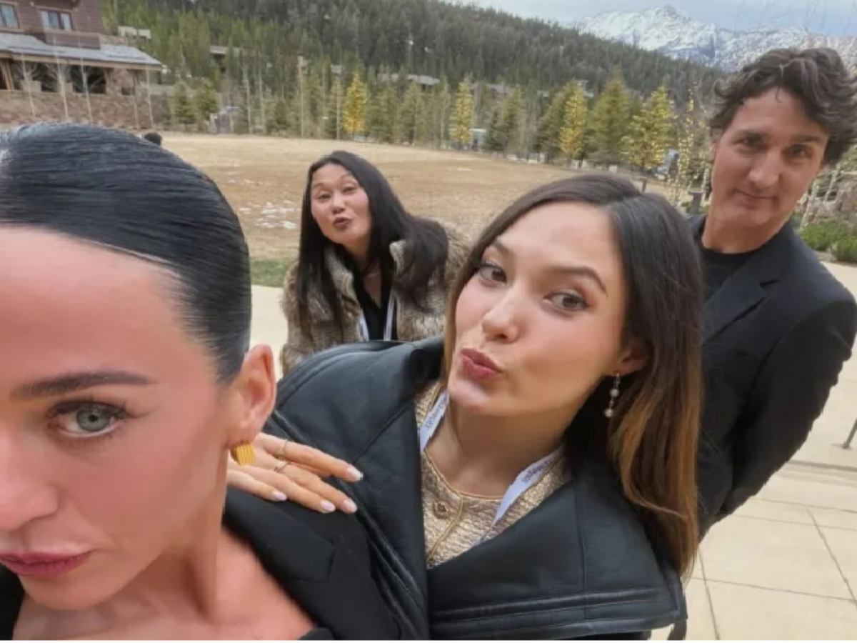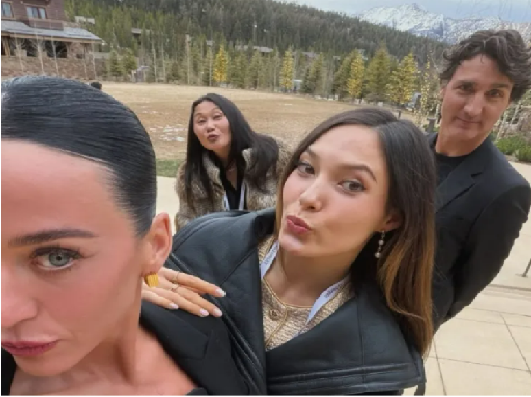 Aos 41 anos, a cantora publicou uma galeria de fotos dos bastidores de seus compromissos profissionais. Em uma das imagens, Justin Trudeau, namorado de Katy, aparece ao lado de uma amiga do casal, a esquiadora chinesa Eileen Gu.