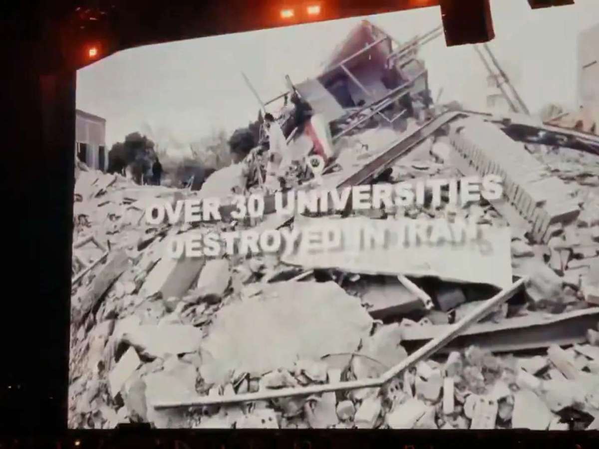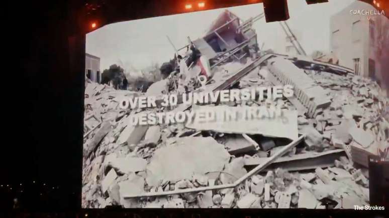 Indo além, os Strokes culparam o governo dos EUA por outras questões políticas, desde o assassinato de Martin Luther King Jr. até os resultados dos conflitos recentes no Irã e na Palestina, afirmando que mais de 30 universidades no Irã foram destruídas pela guerra e finalizando sua mensagem mostrando "a última universidade em Gaza" sendo atacada por um míssil.
