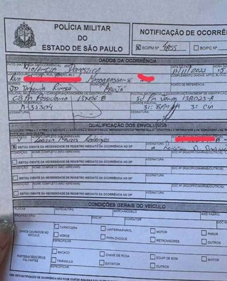 Sem citar o nome da funkeira, ela compartilhou uma foto de um boletim de ocorrência