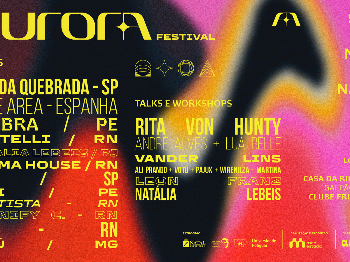 O AURORA conta com a participação de nomes de destaque no cenário internacional, como Linn da Quebrada, a DJ e produtora IDLIBRA — que fez parte do lineup do Lollapalooza Brasil 2026 — o próprio Ali Prando e a dupla espanhola Dame Area, que acaba de se apresentar no Primavera Sound. Outros artistas confirmados são o mineiro Votú e os natalenses Taj Ma House, SANTELLI, GENI, Ametista, Jennify C. e DK.