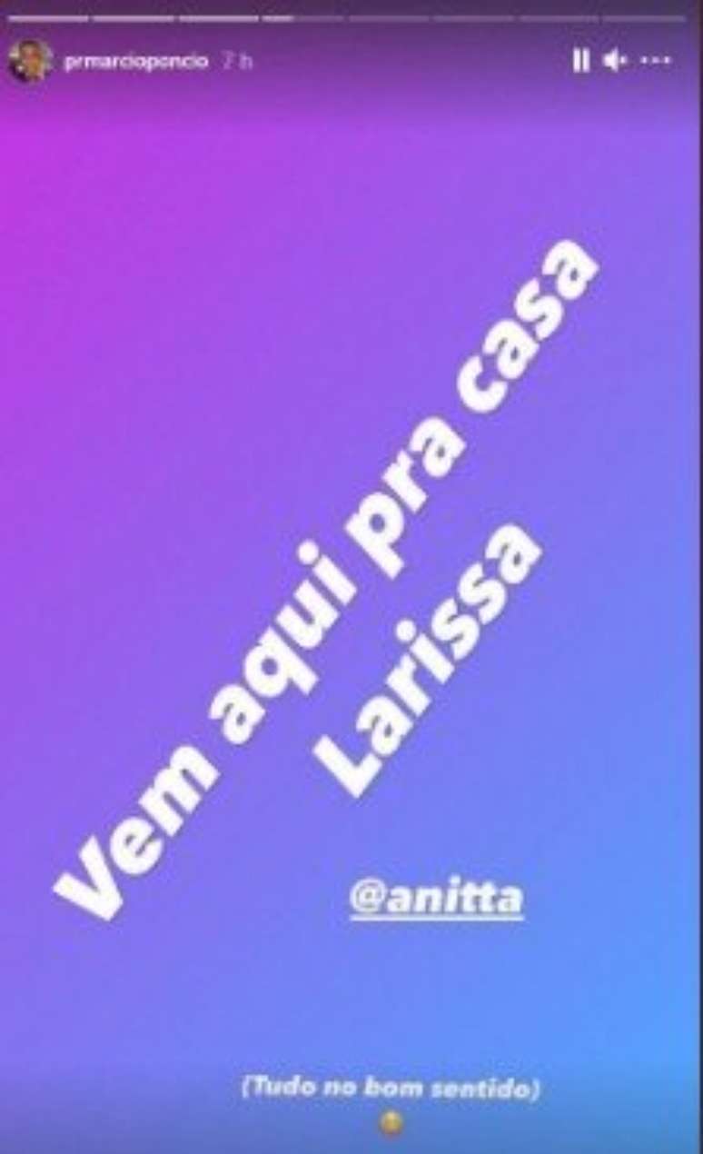 A cantora Anitta recebeu um convite surpreendente do pastor Márcio Poncio no Instagram. Nos stories, ele deixou a seguinte mensagem para a hitmaker de Me Gusta: "Vem aqui pra casa, Larissa". A publicação foi realizada na última sexta-feira (11).