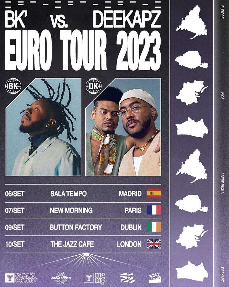 Na agenda, BK´ embarca no dia 31 de agosto para Europa, onde fará show em Lisboa, Coimbra, Porto, seguindo por Madrid, Paris, Dublin e Londres.
