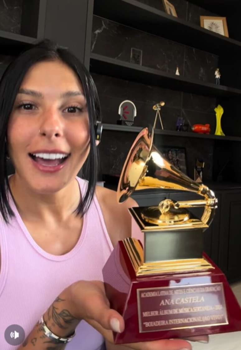 Ana Castela publicou um vídeo mostrando seu prêmio Grammy Latino recebido com atraso neste sábado, 25, em seu perfil no Instagram. O troféu é referente à premiação realizada em novembro de 2024, há cerca de um ano e meio.