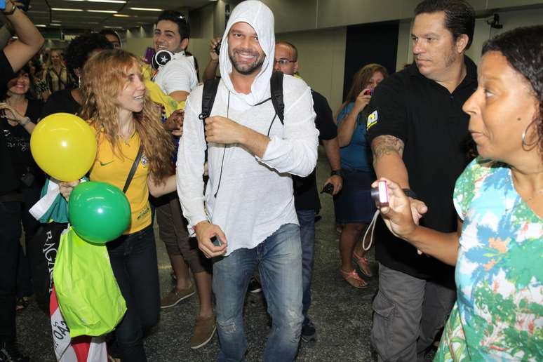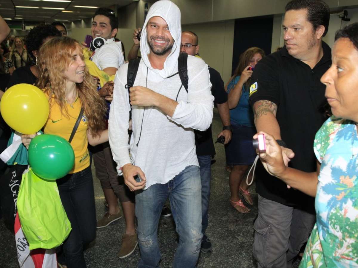 O cantor Ricky Martin desembarcou na tarde de domingo (9) no aeroporto do Galeão, no Rio de Janeiro