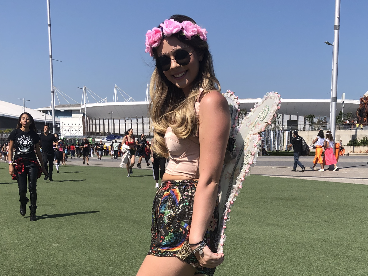 Nesta quinta-feira de muito calor no Rio de Janeiro, o público do festival deu um show com looks diferentes e ousados. As inspirações são muitas, e nossa repórter Camila Lourenço encontrou de tudo um pouco: muito brilho, asa de borboleta, flores, tops, suspensório e até um coturno. Afinal, o que vale aqui é a criatividade, não é mesmo? E pra você, qual o melhor look do Rock in Rio até agora? Confira no vídeo!