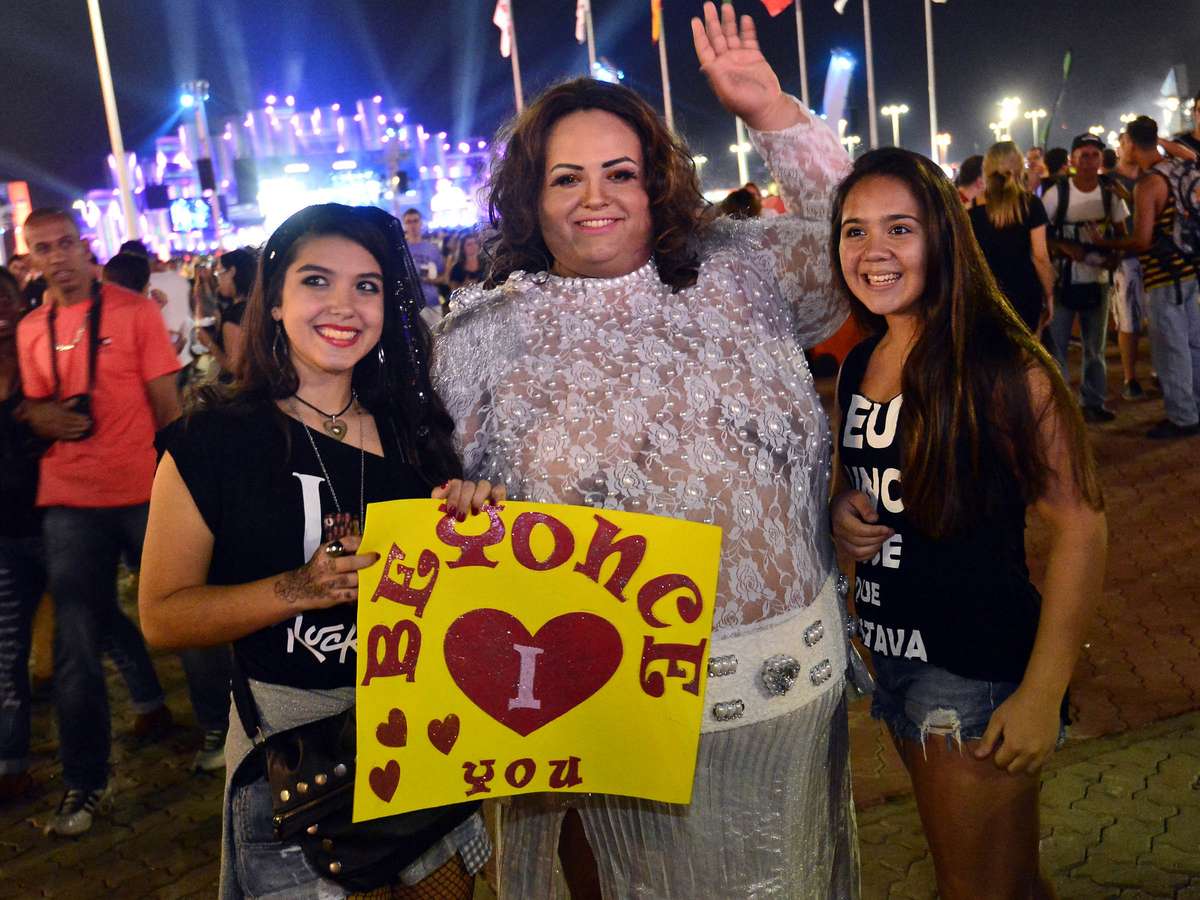 A noite chegava nesta sexta-feira (13), o palco Mundo já fazia sua homenagem para o eterno poeta Cazuza, mas os flashes dos fãs com seus respectivos celulares estavam todos concentrados em uma figura ímpar que se destacava na Cidade do Rock. “Essa Beyoncé aí está com um pouco de sobrepeso, não”, brincou a estudante Carolina Gonçalvez, de Florianópolis, Santa Catarina.
