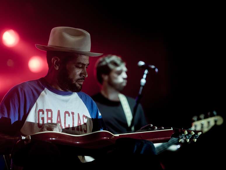 Ben Harper e o lendário gaitista Charlie Musselwhite apresentaram nesta sexta-feira (20), no Rock in Rio, as principais canções de Get Up!, disco que lançaram juntos em janeiroFoto: Mauro Pimentel / Terra