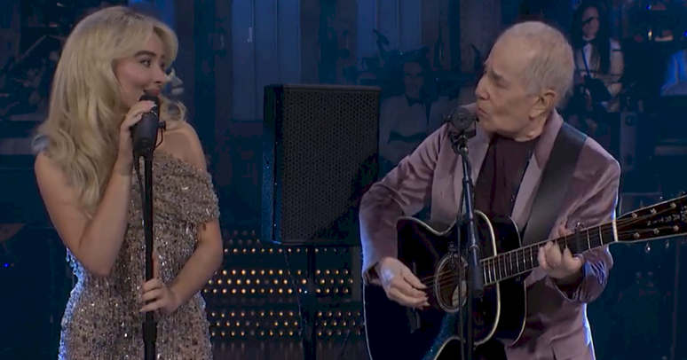 Sabrina Carpenter e Paul Simon cantam o clássico 'Homeward Bound' no SNL