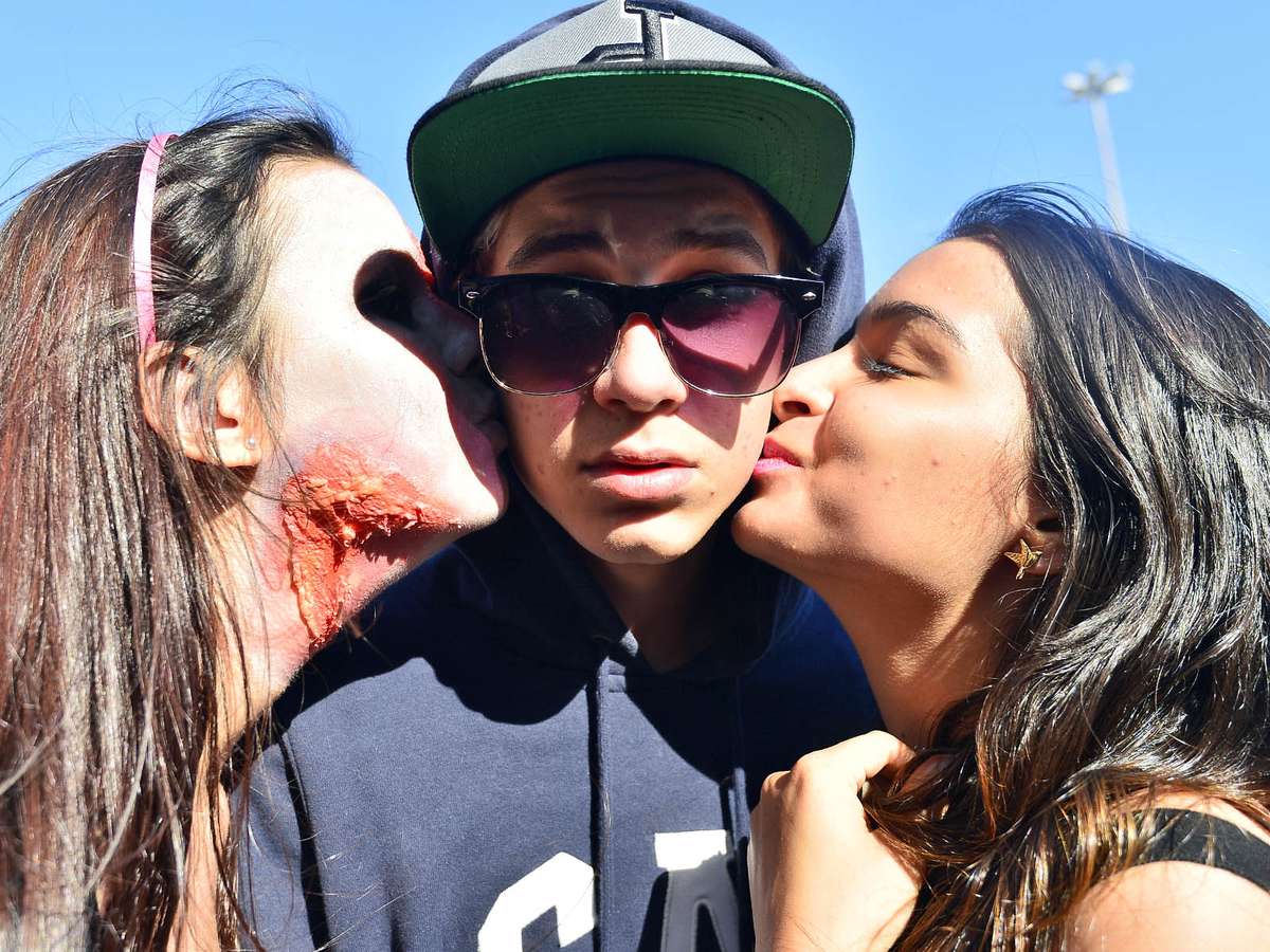 A concentração de fãs no local fez a alegria do estudante Tony Citronoviks, de 15 anos. Vestido à la Bieber, rapidamente foi cercado pela turma que ali estava. Tirou centenas de fotos, carregou bebês, atendeu aos pedidos de beijos e abraços. Com o celular na mão, ia aumentando o número de amigos no Facebook.