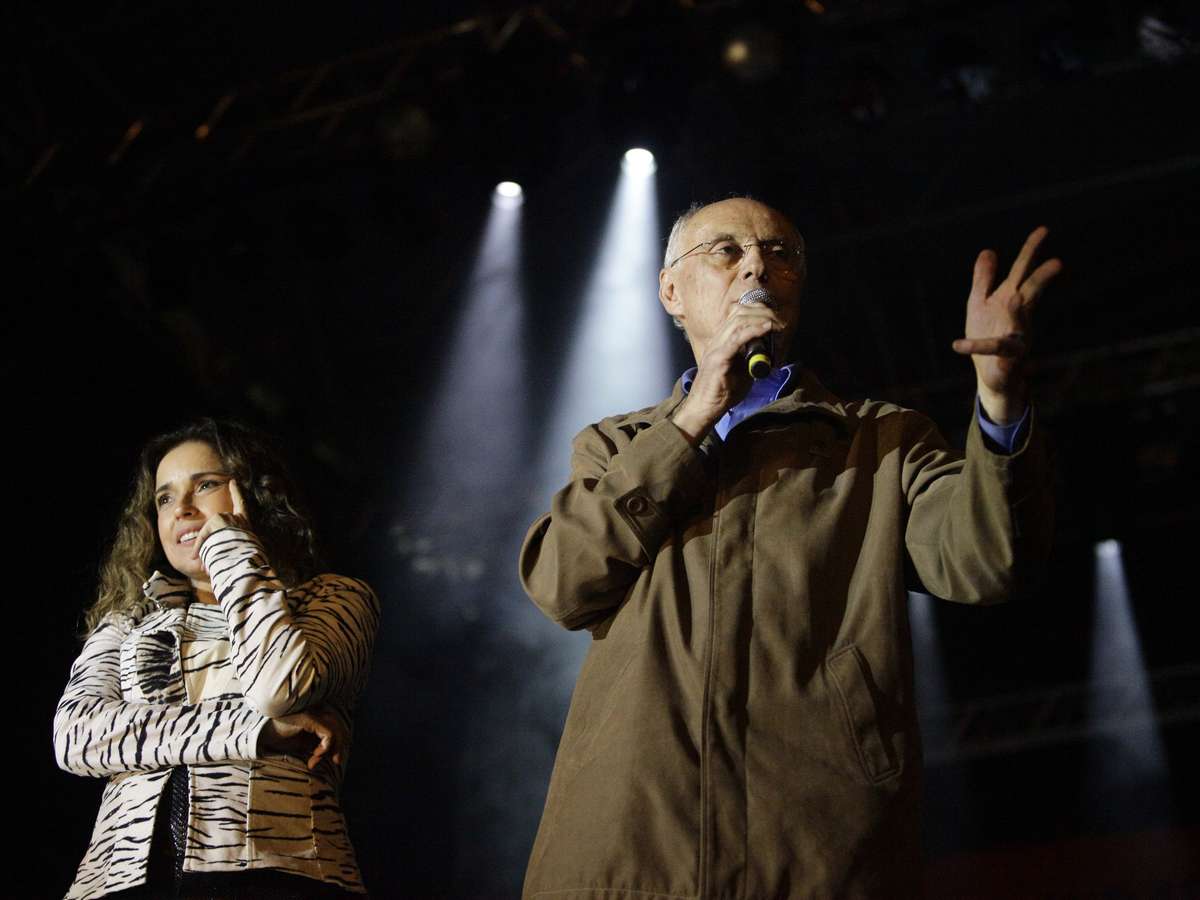 Eduardo Suplicy teve a carteira e o celular roubados quando estava no meio público. O senador (PT - SP) subiu ao palco, ao lado de Daniela Mercury, e a cantora fez um apelo para que a carteira fosse devolvida. Na foto, o prefeito Fernando Haddad