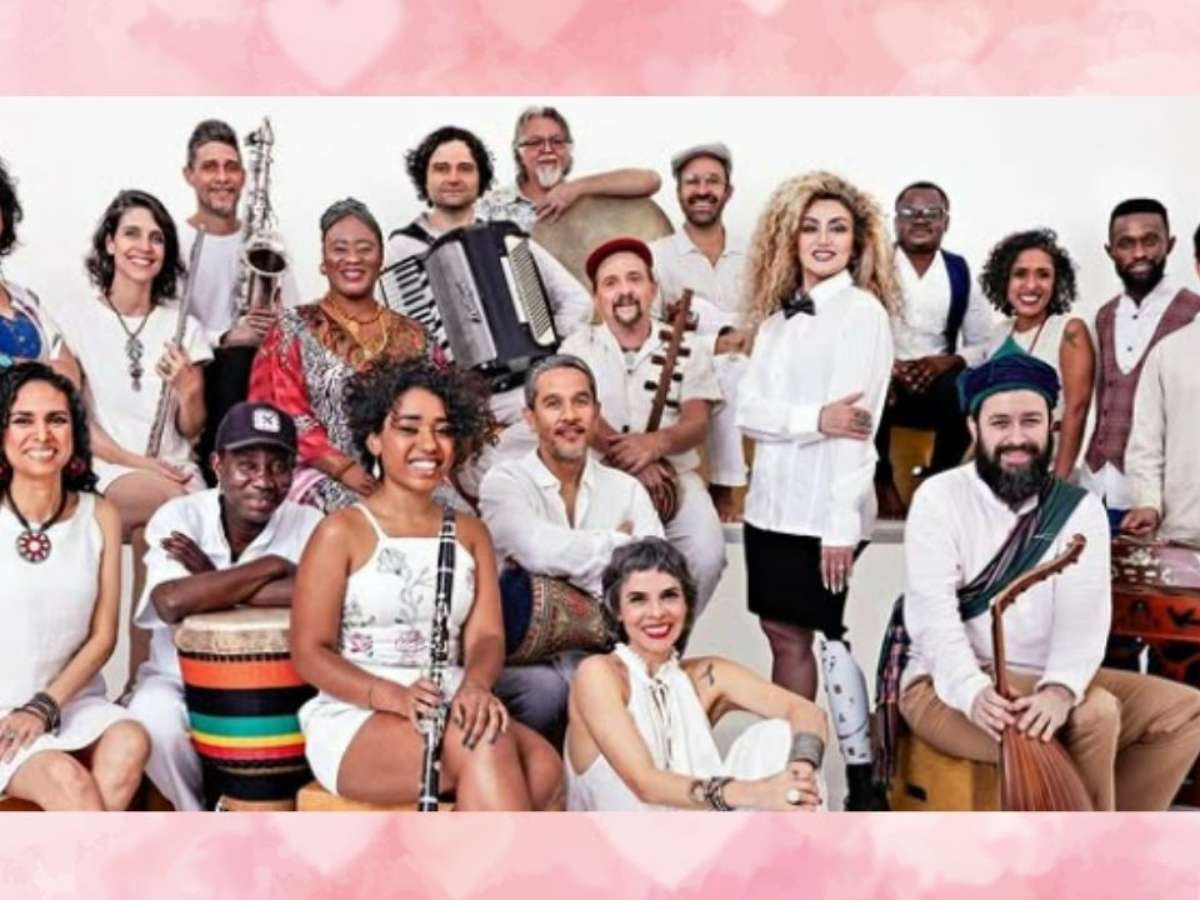 Criada pelo multi-instrumentista Carlinhos Antunes, a orquestra é uma verdadeira viagem cultural, misturando ritmos árabes, africanos, latinos e asiáticos em arranjos que passam por clássicos de Milton Nascimento e Chico Buarque, além de composições autorais. Ao todo, são 21 artistas de lugares como França, Cuba, Palestina, Síria, Congo, Haiti, Irã, Guiné-Conacri e várias regiões do Brasil — cada um trazendo sua bagagem musical e cultural para o palco.