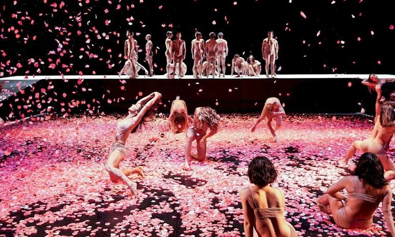 Um dos pontos altos do espetáculo, são as 650 mil pétalas artificiais revestidas de veludo que caem e transformam o palco do Theatro em uma surpreendente beleza visual.