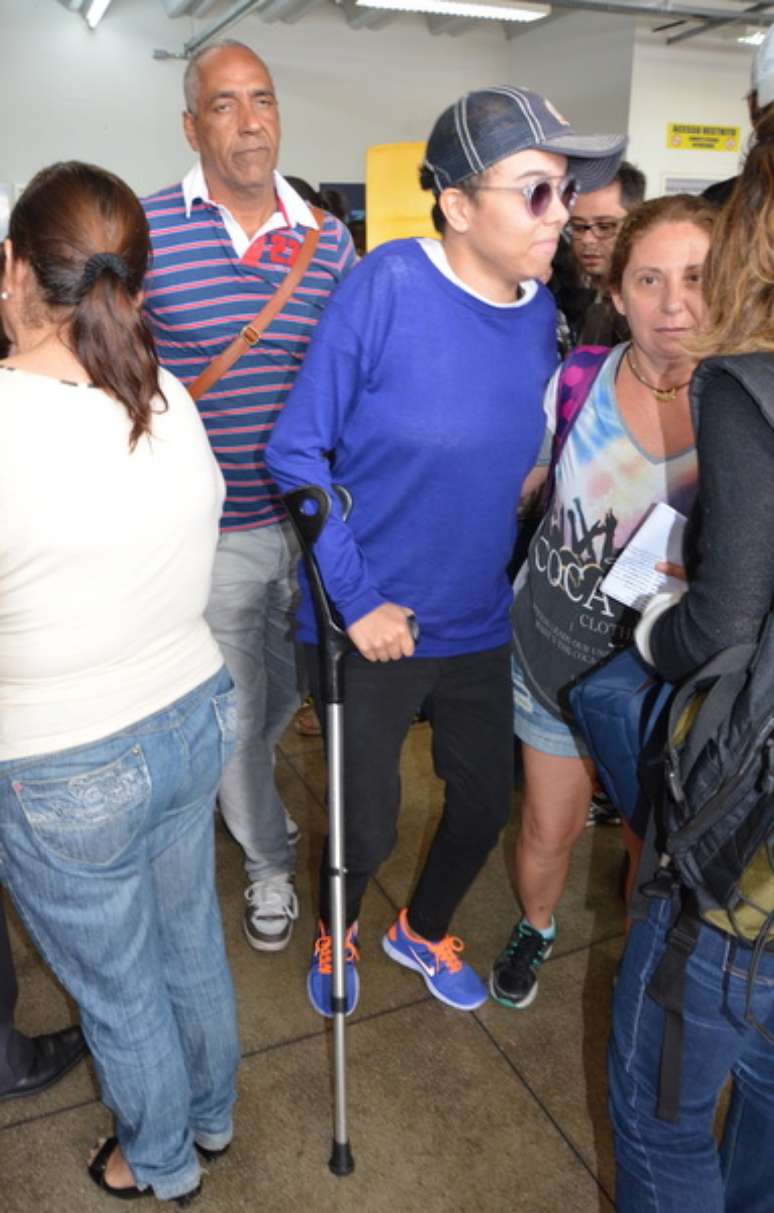 Gadú desembarcou no aeroporto Pedro Otacílio Figueiredo na tarde de domingo (22), ainda usando uma muleta. Em outubro, a cantora rompeu os ligamentos do joelho após descer do palco durante uma apresentação em Brasília.