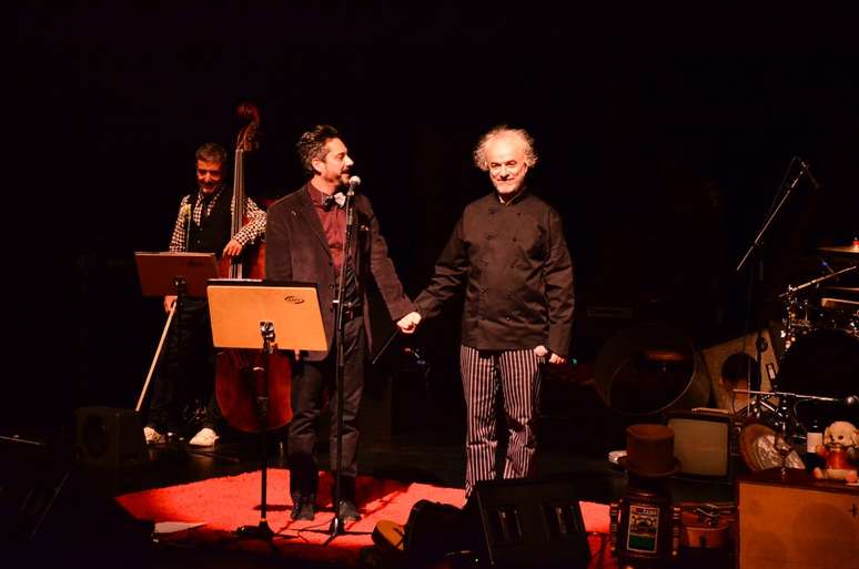 Mais conhecido pela carreira de ator, Alexandre Nero lançou seu primeiro DVD - 'Revendo Amor, com pouco uso, quase na caixa' - em show realizado no Auditório do Ibirapuera, em São Paulo, neste domingo (17). Na teatral apresentação, pautada em canções próprias e versões de grandes sucessos nacionais, ele recebeu participação no palco de nomes como Carlos Careqa e André Abujamra (lado a lado na foto)