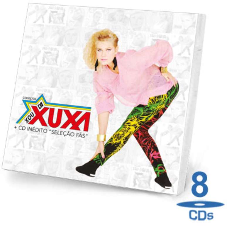 Xuxa está lançando um remake de seus sucessos em uma coletânea e repetiu na capa do box a mesma pose do primeiro Xou da Xuxa.