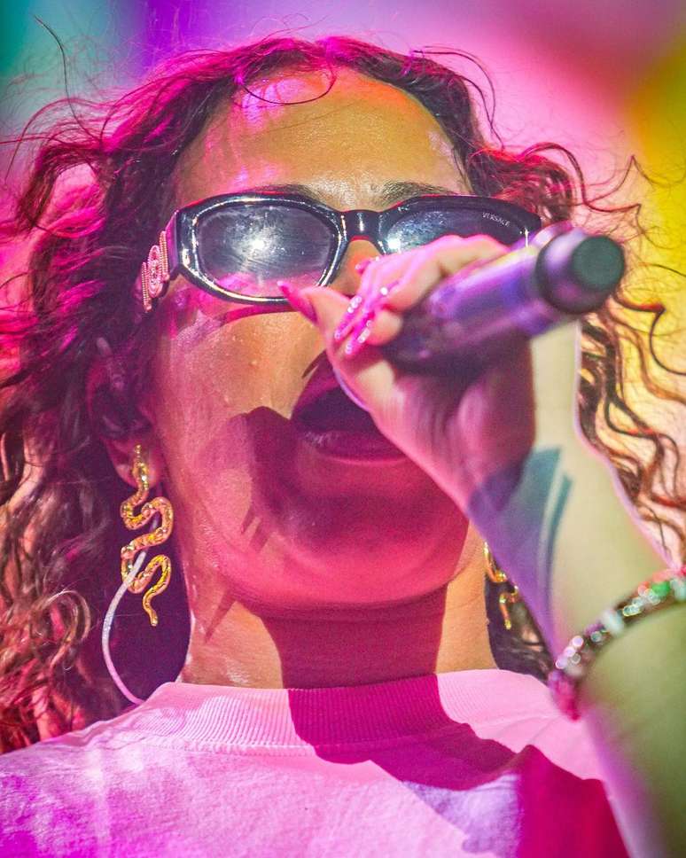 Flora Matos é uma das artistas mais dedicadas ao seu trabalho na cena do Rap e da música no geral, ela se entrega nos shows, pula, dança, deita e rola. Não tem jeito.