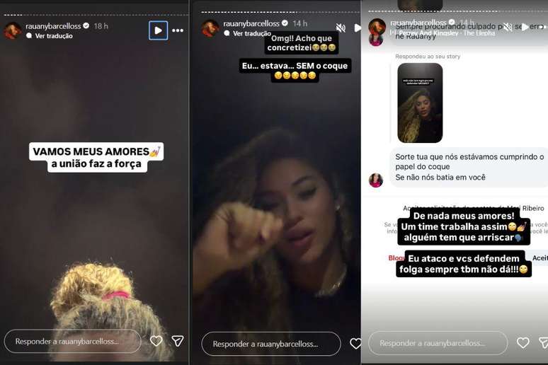 Rauany usou os Stories do Instagram para explicar sua crença. Ela confessou ter assistido a parte do jogo sem o tradicional coque para testar o efeito na partida.