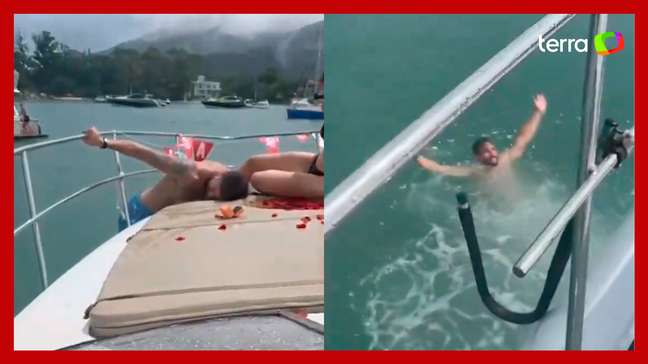 Noivo ao mar: homem viraliza ao cair na água durante pedido de casamento em barco