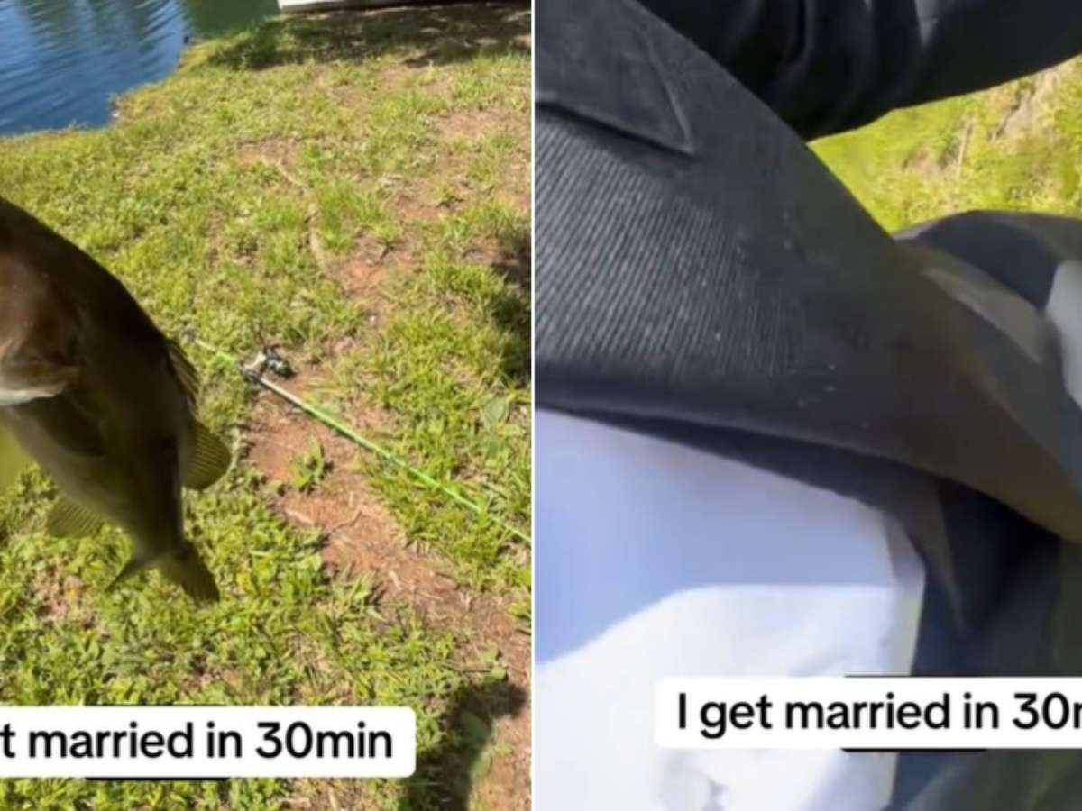 Noivo viraliza ao pescar de smoking minutos antes do casamento nos EUA