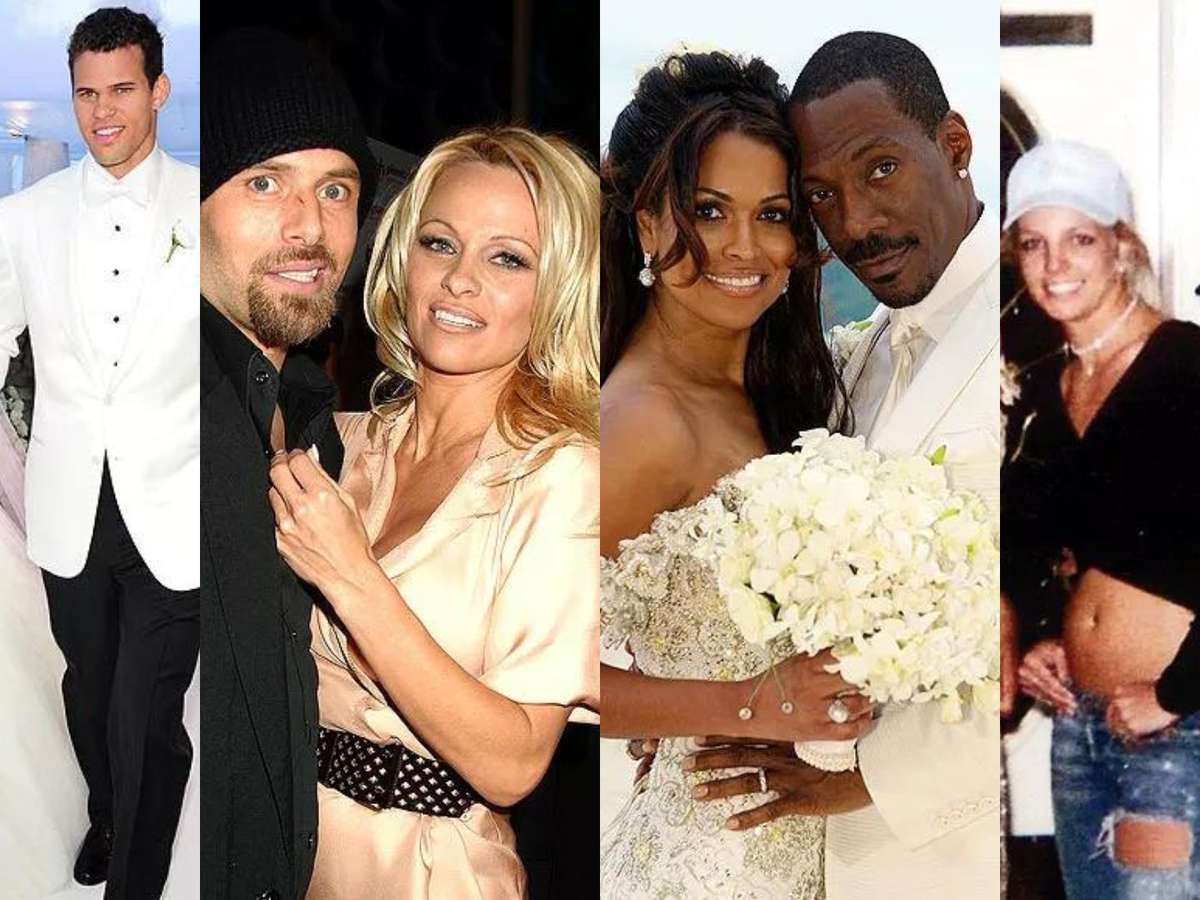 Nem toda história de amor termina bem na vida real, ainda mais no mundo das celebs, onde a todo momento surgem novas notícias de separações polêmicas. Algumas acontecem após anos de relacionamento, já outras, para a surpresa de todos, surgem após poucas horas de união (alô Britney Spears! rs). Pensando nisso, a revista People listou 29 casais que viveram casamentos relâmpagos e deram o que falar.