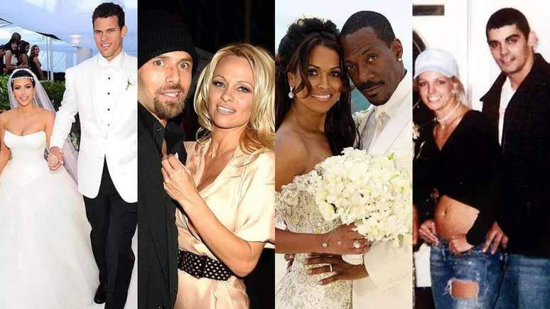 Em primeiro lugar, temos Britney Spears, Jason Alexander e o casamento nada tradicional que chamou atenção em 2004. Com a noiva vestindo calça jeans e boné, a rápida cerimônia realizada na Little White Wedding Chapel de Las Vegas foi cenário da união de Spears e seu amigo de infância, Alexander, mas não teve um final feliz. Afinal, o casamento foi anulado 55 horas depois.