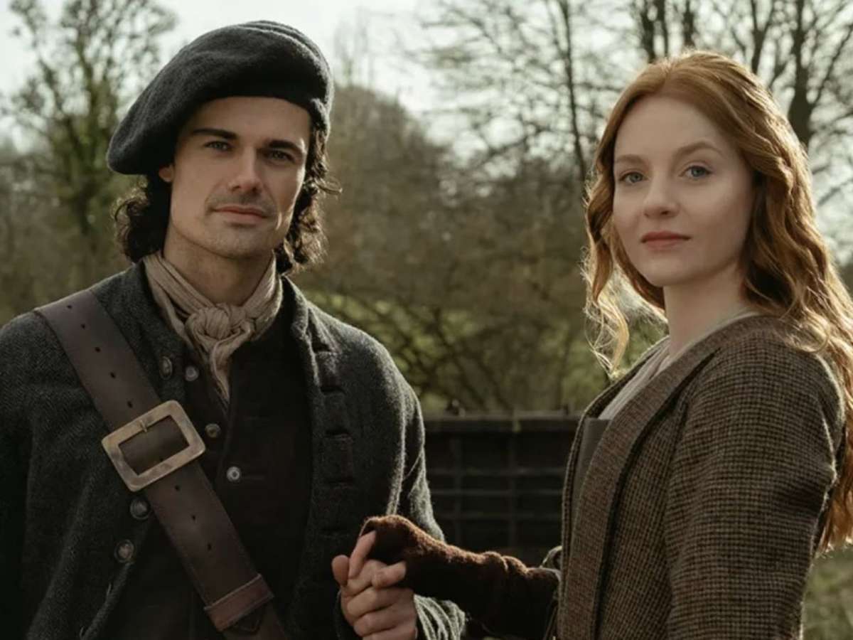 Nos episódios, os pais de Jamie são vividos por Jamie Roy (Condor) e Harriet Slater (Pennyworth) em um arco ambientado nas Highlands, ainda sob forte influência dos clãs rivais. Paralelamente, Jeremy Irvine (Cavalo de Guerra) e Hermione Corfield (Missão: Impossível - Efeito Fallout) vivem os pais de Claire, que se conhecem em meio aos horrores da guerra e, por meio de um elemento místico, acabam transportados para 1714, aproximando o passado de Claire ao de Jamie muito antes do casal se encontrar.