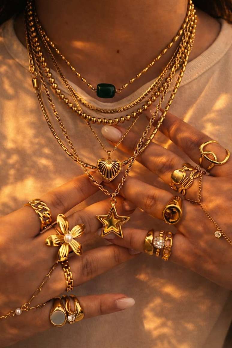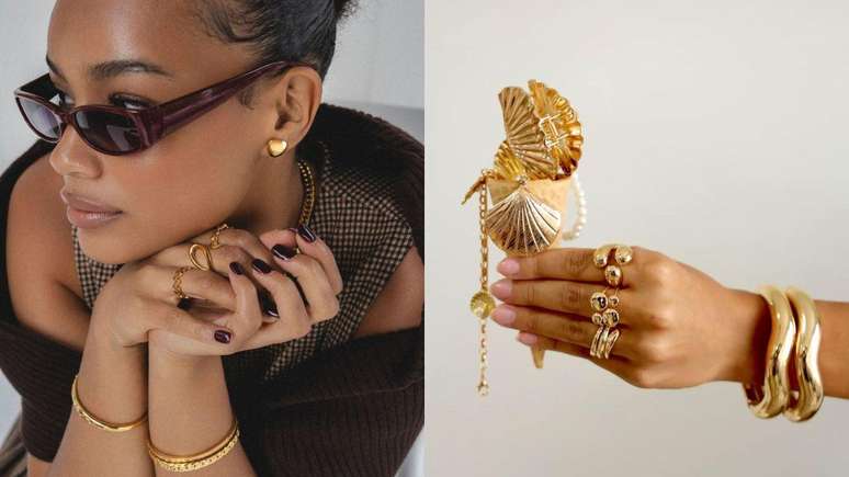 A geminiana se diverte com o mix de anéis e pulseiras coloridas. Já a libriana foca na estética e ama colares de pérolas ou correntes finas.