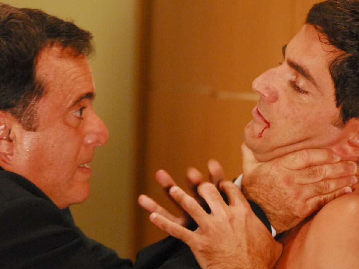 "Vai para o quarto do Daniel que eu não vou deixar esse louco tocar em você", dirá o galã, imobilizando o ricaço.