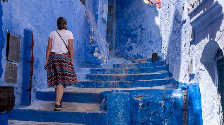 A cidade de Chefchaouen, no norte do Marrocos, tem fama mundial de "cidade mais azul do mundo" por causa das suas ruas, escadarias e fachadas pintadas em diferentes tons de azul. Assim, esse cenário cria um ambiente visual muito marcante, que chama atenção de viajantes, fotógrafos e pesquisadores. Ao caminhar pela medina, praticamente tudo remete à cor azul, o que ajuda a explicar o apelido que a cidade ganhou ao longo dos anos.