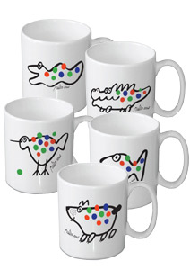 | Imagens das canecas com desenhos feitos pelo artista plástico Gustavo Rosa |