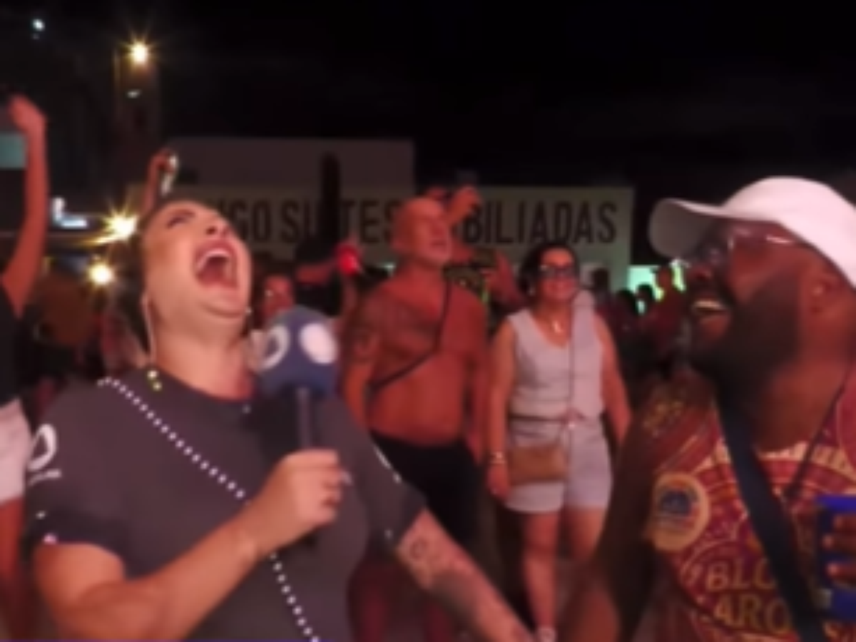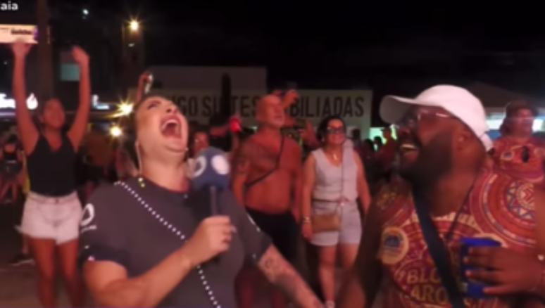 “Uma hora dessas! Eu, veado que só”, continuou o folião, arrancando uma crise de riso da jornalista.