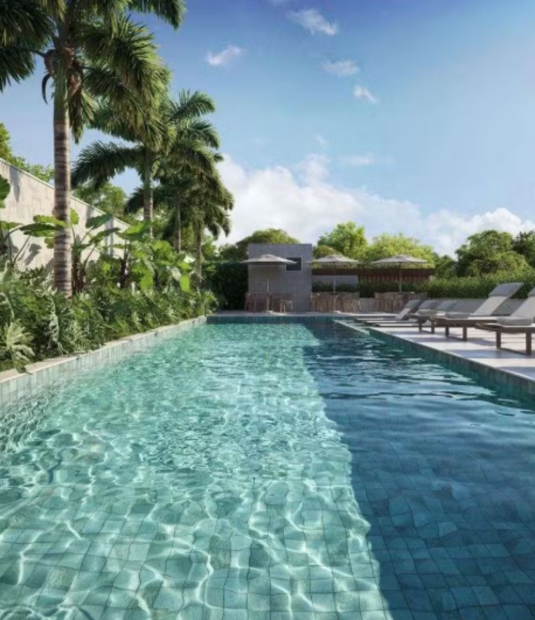 A estrutura reforça o perfil exclusivo do empreendimento. A previsão de entrega do imóvel é para agosto.