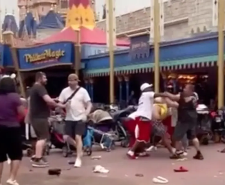 Uma confusão generalizada, com a direitos a socos, gritos e prisão, foi flagrada pelas câmeras em um dos parques da Disney, na Flórida (EUA), na quarta-feira (20). A pancadaria deixou uma pessoa hospitalizada, alguns presos e outros banidos do famoso parque temático.
